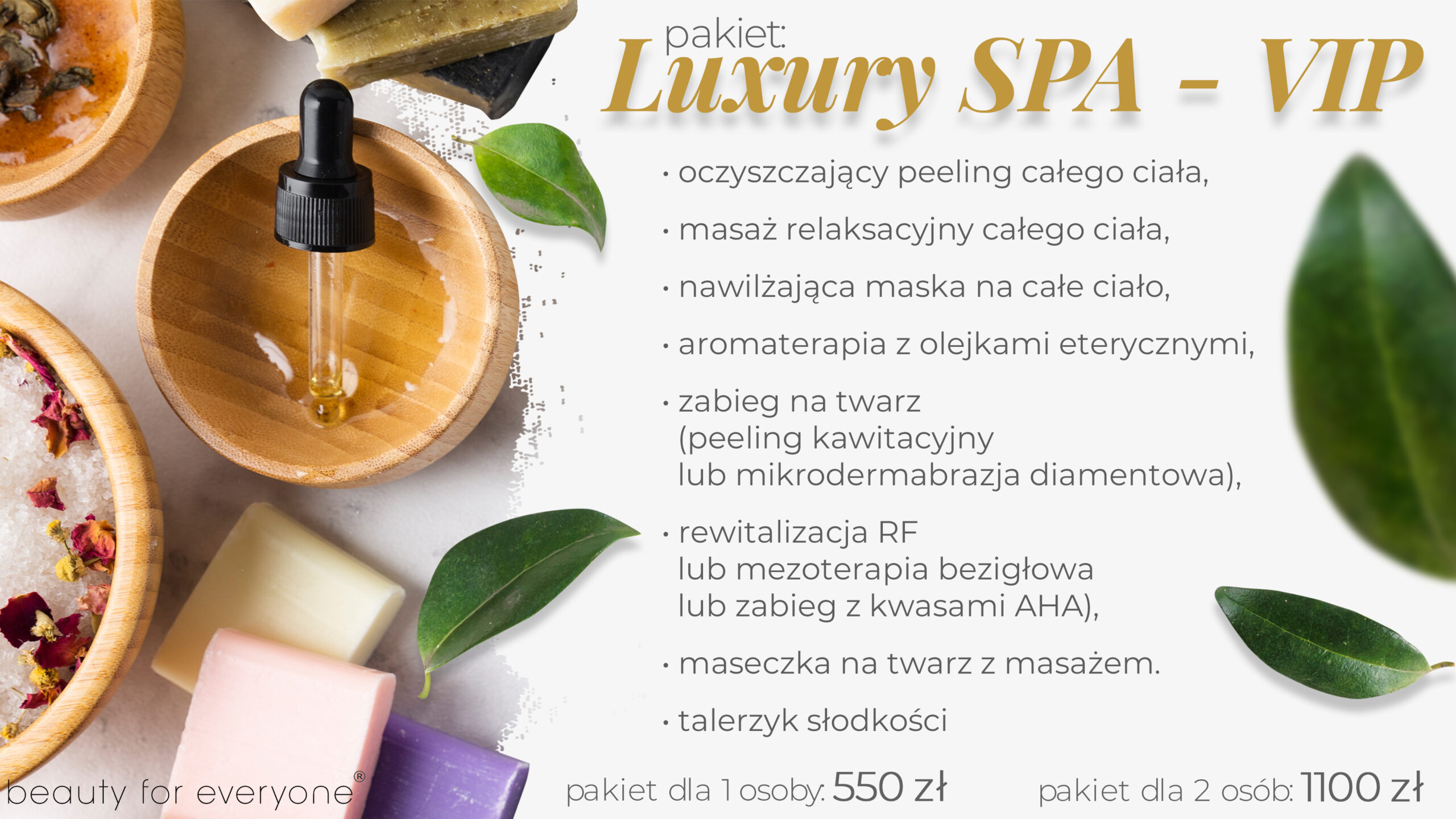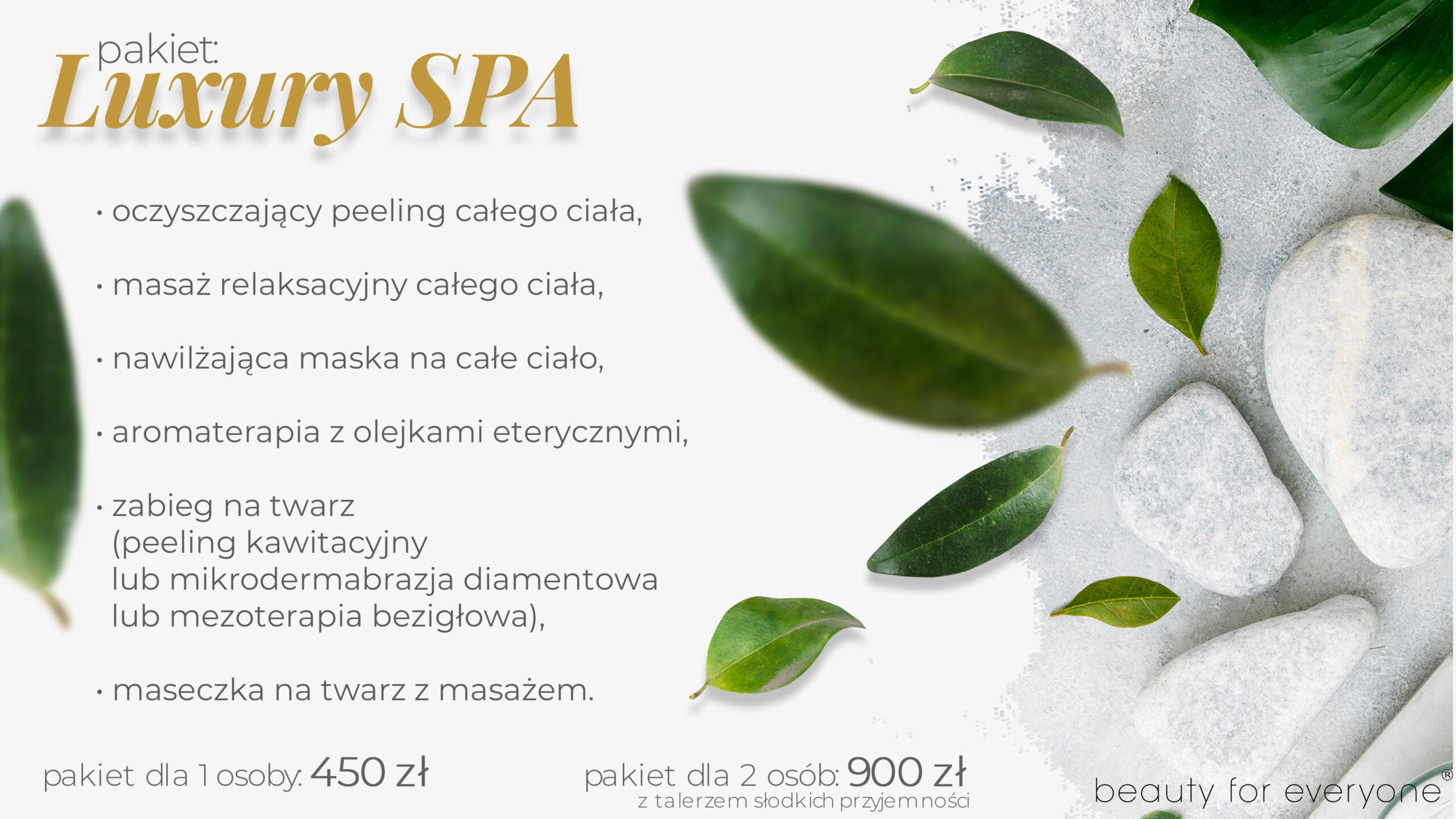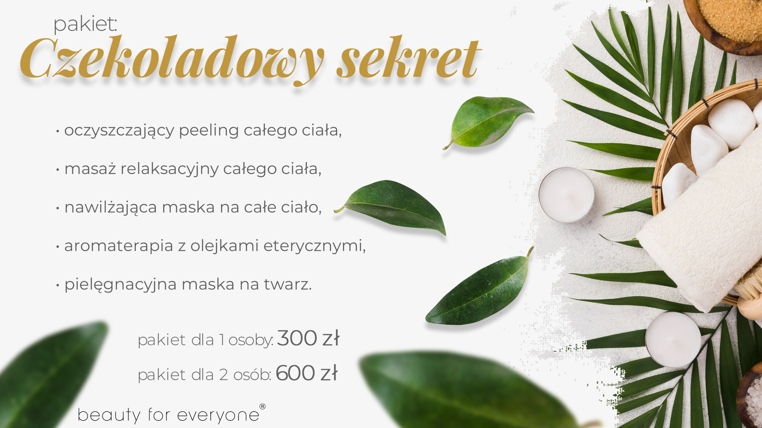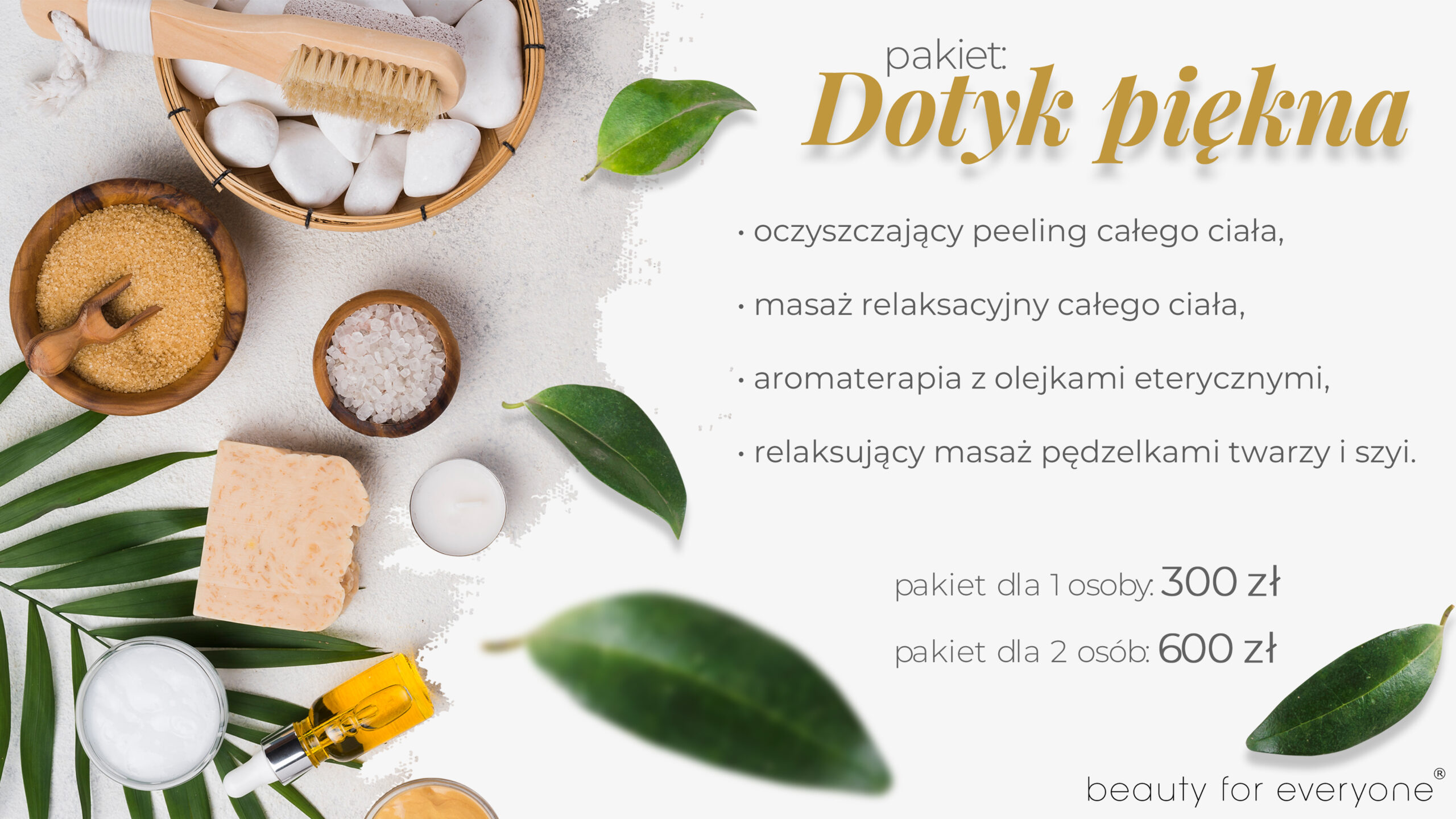 Pakiety spa z zabiegami o działaniu oczyszczającym, relaksującym, nawilżającym, kojącym i odżywczym.